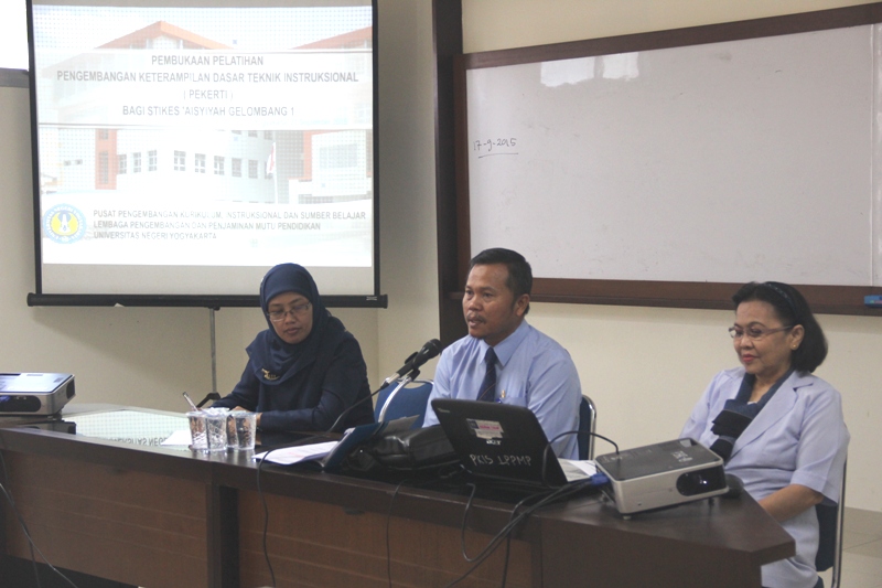 Dosen adalah pendidik profesional dan ilmuwan dengan tugas utama mentransformasikan, mengembangkan dan menyebarluaskan ilmu pengetahuan teknologi dan seni melalui pendidikan, penelitian, dan pengabdian pada masyarakat. Untuk dapat melaksanakan tugas dan kewajiban sebagai pendidik dan pembelajar setiap dosen perlu memiliki kompetensi profesional, pedagogik, kepribadian dan sosial. Oleh karena itu STIKES ‘Aisyiyah Yogyakarta menggelar pelatihan Peningkatan Keterampilan Dasar Teknik Instruksional (PEKERTI) bagi mahasiswa DIV Bidan Pendidik. Pelatihan bersertifikasi ini merupakan kerjasama dengan Lembaga Pengembangan dan Penjaminan Mutu Pendidikan (LPPMP) Pusat Pengembangan Kurikulum, Instuksional dan Sumber Belajar UNY, resmi dibuka pada Senin, (21/9) di Kantor LPPMP UNY.
