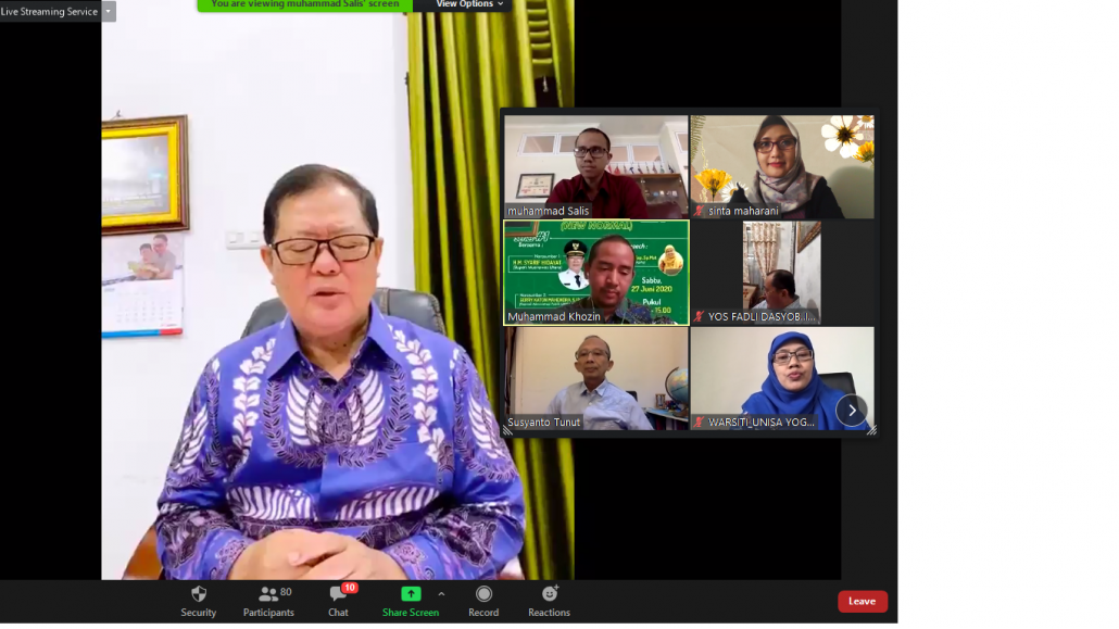 Webinar dengan tema Arah Baru Pembangunan Daerah Menghadapi Tatanan Kehidupan Baru (New Normal) dilakukan secara daring melalui media Zoom, dengan menghadirkan Ir. Susyanto Tunut, MM (Asisten Pemerintahan dan Kesra) sebagai narasumber bersama dengan Gerry Katon Mahendra, S.IP.,M.I.P selaku kaprodi Administrasi Publik Unisa Yogya sebagai narasumber ke 2.