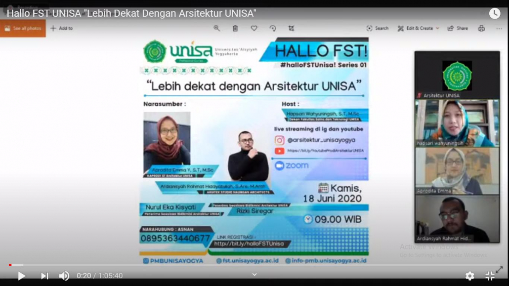 Fakultas Sains Dan Tehnologi (FST) Universitas Aisyiyah Yogyakarta, mengenalkan Program Studi Arsitek Unisa Yogya melalui Talkshow Online, Kamis (18/06).