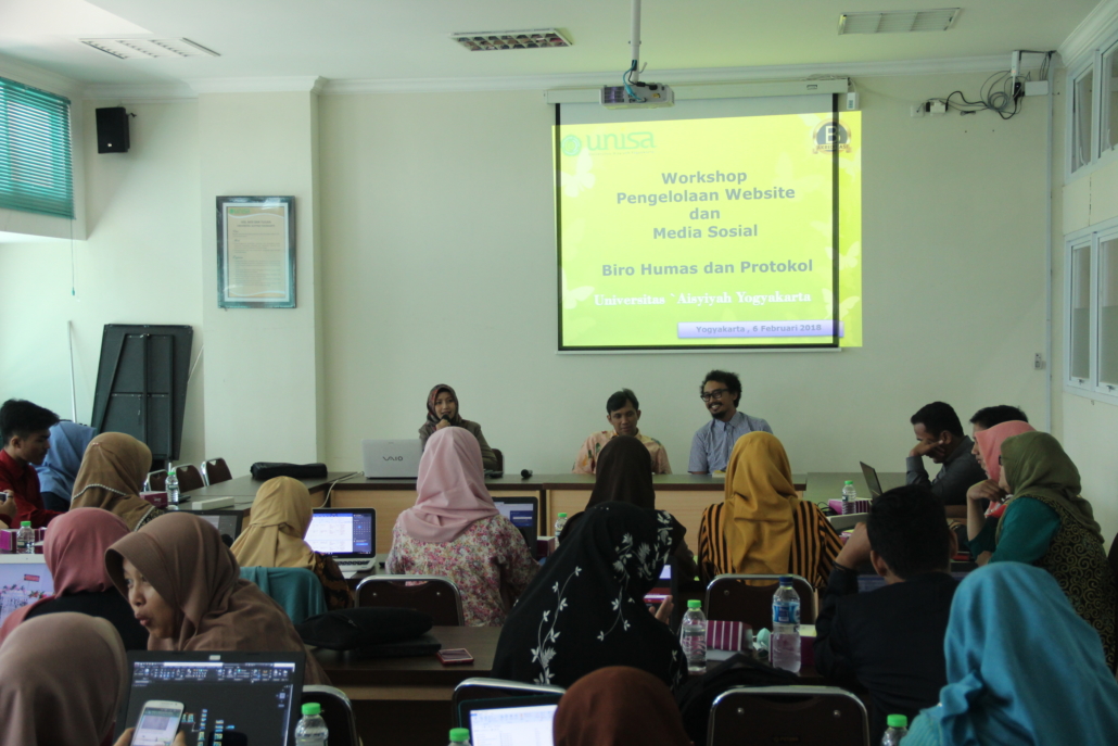 Biro Humas dan Protokol (BHP) Universitas ‘Aisyiyah (UNISA) Yogyakarta mengggelar pelatihan pengelolaan media sosial dan website, di kampus UNISA, Selasa (6/2).
