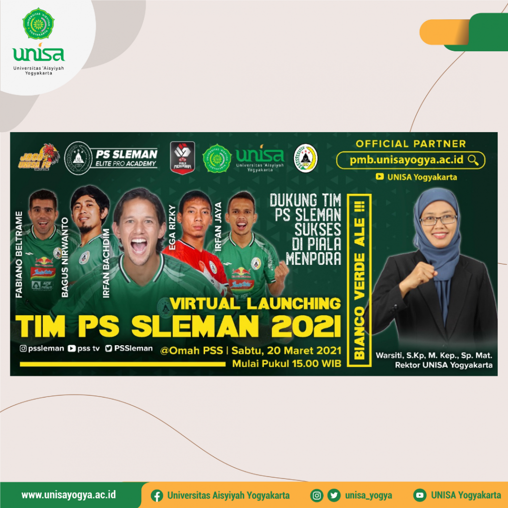 Universitas Aisyiyah (UNISA) Yogyakarta luncurkan program beasiswa yang ditujukan untuk kalangan supporter kreatif PS Sleman (20/3). Langkah ini diambil untuk mendukung kemajuan sepakbola khususnya di Kabupaten Sleman. Beasiswa supporter tersebut nantinya akan hadir melalui skema beasiswa peduli Covid-19.