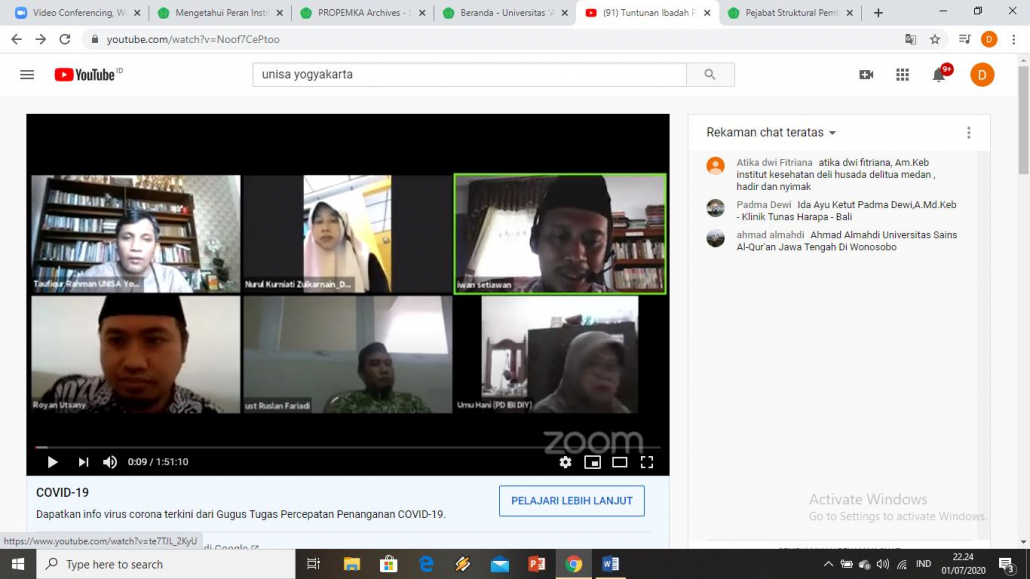 Akhir acara dilakukan sesi tanya jawab melalui aplikasi zoom dan streaming live di channnel youtube Universitas Aisyiyah Yogyakarta, sehingga dapat disaksikann oleh masyarakat luas.