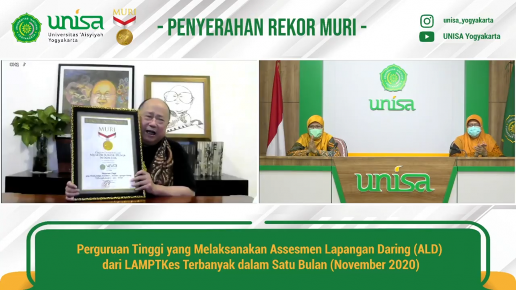 Universitas `Aisyiyah Yogyakarta pecahkan rekor Museum Rekor Indonesia (MURI), sebagai perguruan tinggi yang melaksanakan Assesmen Lapangan Daring (ALD) dari LAM-PTKes terbanyak dalam satu bulan (November 2020).
