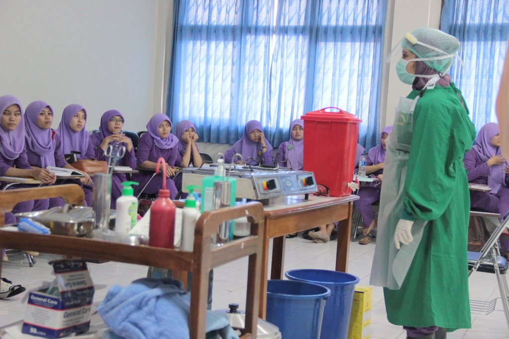 Kegitan ini berupa pelatihan yang terdiri dari beberapa sesi. Setiap selesai materi kemudian langsung dilanjutkan dengan sesi praktik yang di dampingi langsung oleh tim PPI. Sebagai seorang bidan yang profesional harus mampu mempunyai pengetahuan tentang pencegahan dan pengendalian infeksi.