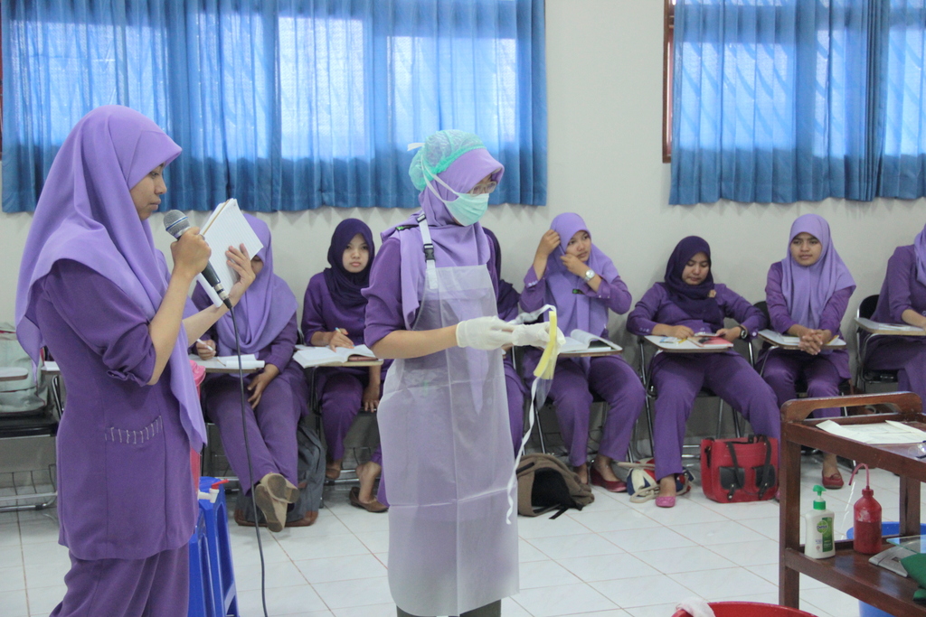 Pengetahuan, sikap dan perilaku tenaga kesehatan dalam melakukan pencegahan infeksi (PI) untuk mencapai tujuan tersebut sangat penting. Mahasiswa Program Studi DIV sebagai tenaga kesehatan/bidan dirasa perlu untuk sertifikasi dengan paltihan Pencegahan dan Pengendalian Infeksi. Akan hal itu, Stikes ‘Aisyiyah mengadakan pelatihan bagi mahasiswa DIV Kebidanan. Pelatihan belangsung selama beberapa hari, yaitu 17-18 Januari dan 24-25 Januari 2014 di Lantai 3 Kampus 1 Serangan. Tujuan adanya PI/Pencegahan infeksi adalah melindungi ibu, BBL, keluarga, dan tenaga kesehatan sehingga mengurangi infeksi karena bakteri, virus dan jamur. PI juga bertujuan untuk menurunkan resiko penularan berbagai macam penyakit, terutama penyakit berbahaya (hepatitis, HIV/AIDS).