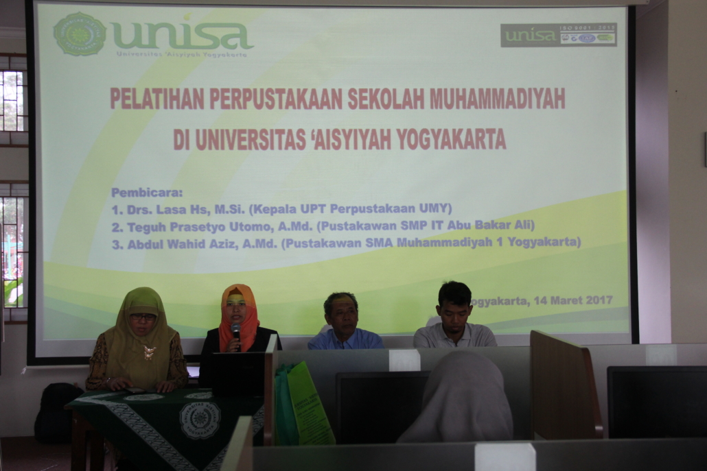 Untuk mendukung terwujudnya visi UNISA Yogyakarta, yaitu menjadi universitas unggul dan pilihan berbasis nilai-nilai Islam, Perpustakaan Universitas ‘Aisyiyah (UNISA) Yogyakarta mengadakan Pelatihan Perpustakaan / Pustakawan Sekolah Muhammadiyah (SMA/SMK) se Kabupaten Sleman, di kampus UNISA, Selasa (14/3).