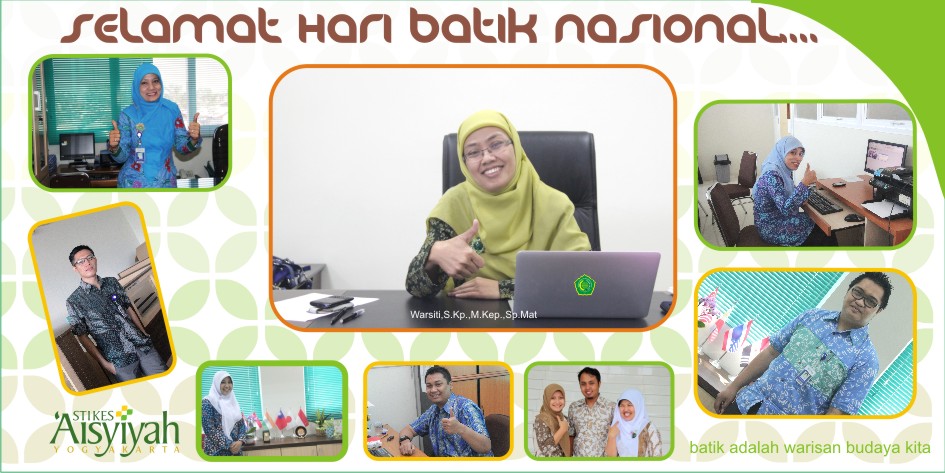 “Kita harus bangga menggunakan batik. Memakai batik kita juga sekaligus mempromosikan dan melestarikan warisan budaya bangsa Indonesia.” kata Warsiti. Batik bukan hanya milik mereka para generasi tua saja, namun sekarang model baju batik didesain untuk generasi muda. Sehingga banyak generasi muda yang bangga memakai batik. Tanggal 02 Oktober tidak hanya diperingati sebagai Hari Batik nasional, namun juga UNESCO menetapkan sebagai hari batik sedunia. Selamat Hatri Batik Nasional.
