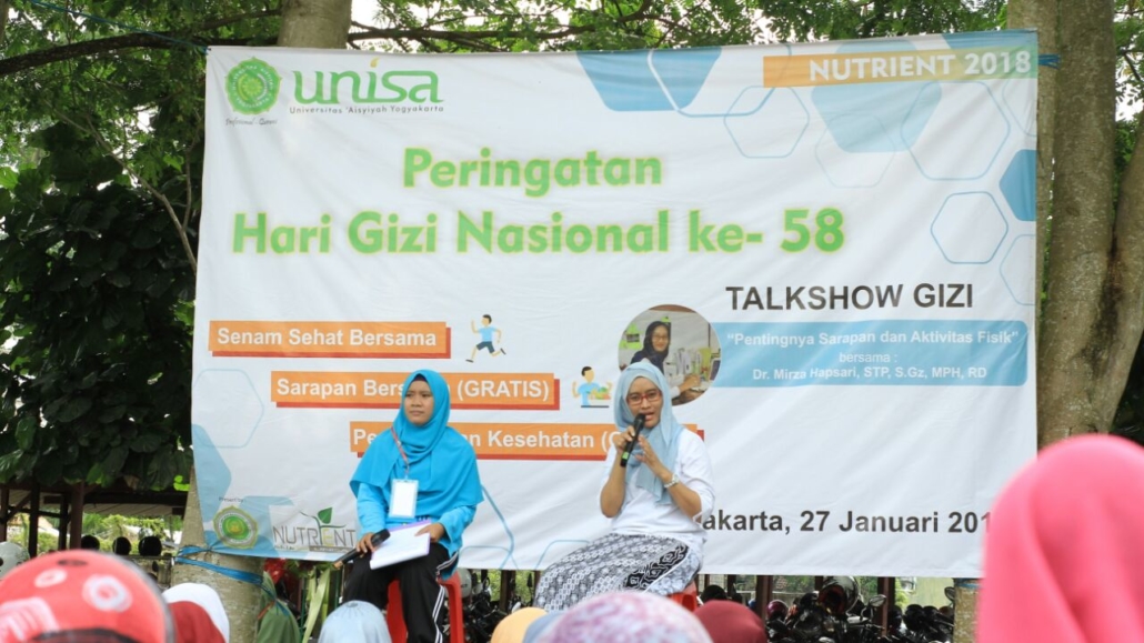 Dalam rangka memperingati hari gizi nasional ke 58 program studi gizi Universitas `Aisyiyah (UNISA) Yogyakarta berkolaborasi dengan Himpunan Mahasiswa Gizi UNISA mengadakan kegiatan dengan tema “The Role of Family Nutrition on Healthy Balanced Diet,” Sabtu (27/1).