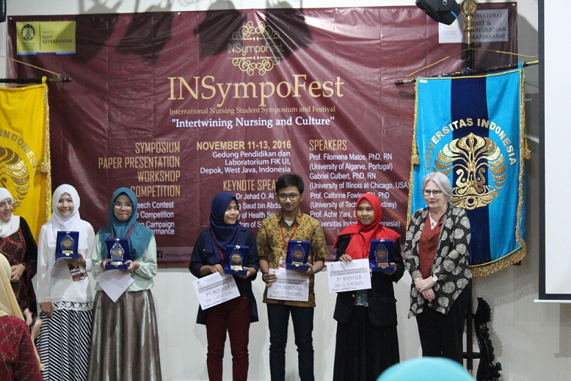 Tim Mahasiswa Ilmu Keperawatan Universitas ‘Aisyiyah (UNISA) Yogyakarta berhasil meraih juara I Photo Competition dalam ajang International Nursing Student Symposium and Festival (INSymposFest) yang digelar oleh Fakultas Ilmu Keperawatan Universitas Indonesia (UI), 11-13 November lalu. Pada pengumuman yang disampaikan panitia tim mahasiswa UNISA yang terdiri dari Milla Annisa Nadyatama, Juniar Ichsan dan Ghozzy Habibie meraih juara I dalam tema ‘’Portraits of Nursing Around The Globe’’.