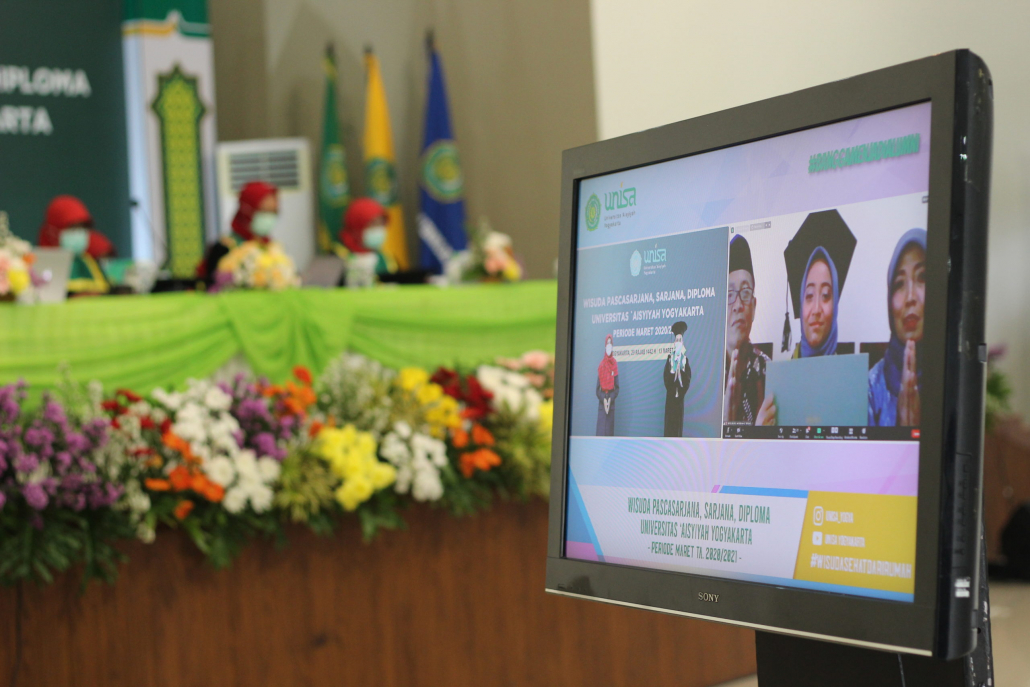Ini kali ketiga Unisa Yogya mengadakan wisuda secara daring memalui Zoom, menurut Istri Utami,S.ST.,M.Keb selaku ketua panitia wisuda mengatakan karena kondisi dan situasi pandemi Covid-19 yang masih belum stabil, maka pihak Unisa Yogya memutuskan untuk tetap melaksanakan wisuda periode Maret 2021 ini secara online.
