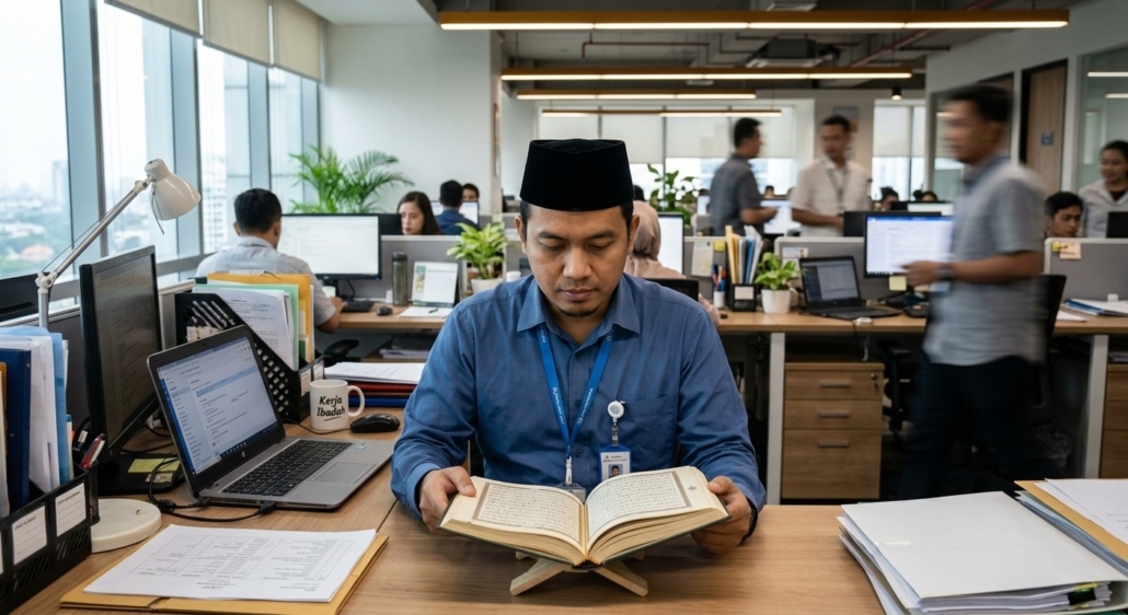 - Dzuhur: Baca 2 lembar (4 halaman) di sela jam istirahat siang.