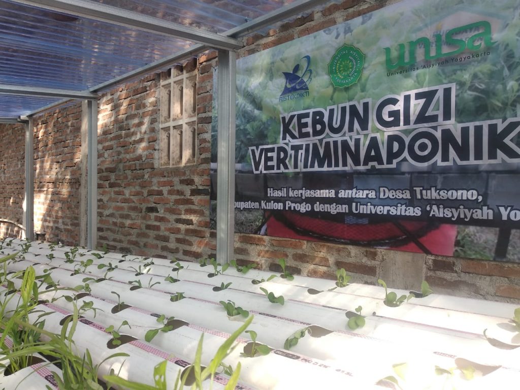 Kegiatan pengabdian masyarakat dilaksanakan di Desa Tuksono. Desa Tuksono sendiri merupakan salah satu desa di Kabupaten Kulon Progo yang menjadi lokus intervensi (lokasi khusus) stunting tahun 2018 Pihak yang terlibat antara lain perangkat desa dan warga yang terdiri dari kader posyandu, ibu-ibu PKK serta melibatkan Bapak-bapak yang terampil dalam pembuatan hidroponik. Menurut Zainuri, selaku Kepala Desa Tuksono menyatakan bahwa kegiatan kebun gizi vertiminaponik ini dapat digunakan sebagai kebun percontohan bagi warga.