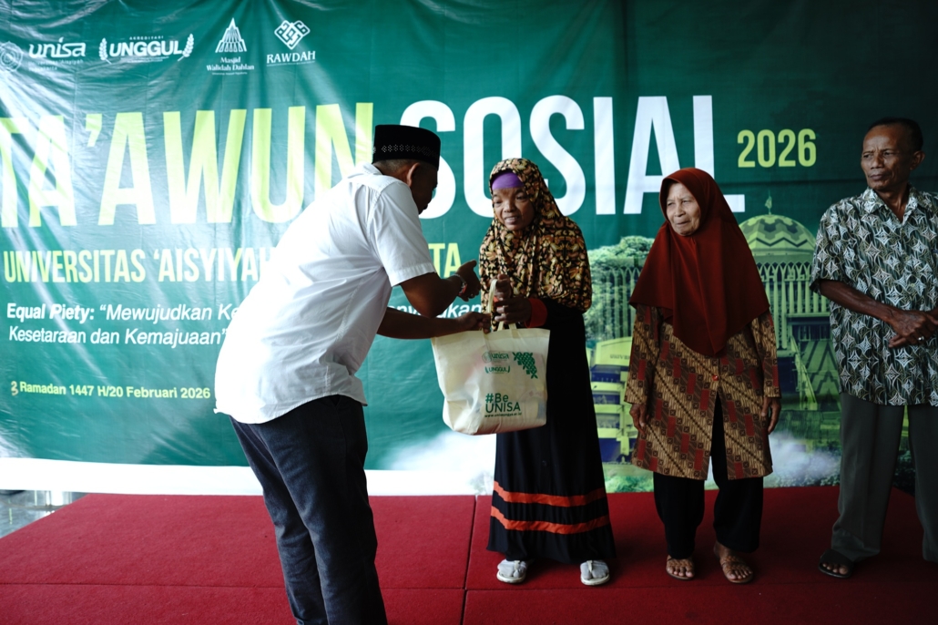 Universitas ‘Aisyiyah (Unisa) Yogyakarta kembali menggelar kegiatan Ta’awun Sosial dengan tema “Equal Piety: Mewujudkan Kesalehan yang Menyatukan Kesetaraan dan Kemajuan” di halaman Convention Hall Unisa Yogyakarta, Jumat (20/2/2026). Agenda ini menjadi wujud nyata kehadiran Unisa Yogyakarta di tengah masyarakat.