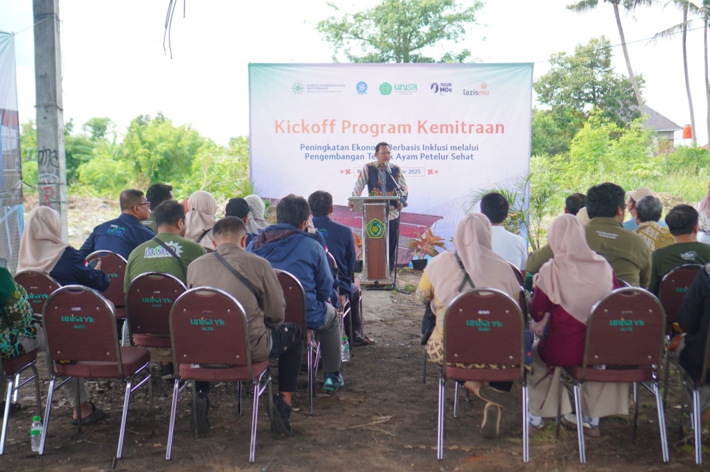 Universitas ‘Aisyiyah (UNISA) Yogyakarta bersama Majelis Pemberdayaan Masyarakat (MPM) Pimpinan Pusat Muhammadiyah secara resmi menggelar Kickoff Program Kemitraan Peningkatan Ekonomi Berbasis Inklusi melalui Pengembangan Ternak Ayam Petelur Sehat yang berlokasi di Pedukuhan Karangtengah Nogotirto Gamping Sleman, Rabu (30/12/2025). Program ini menjadi langkah konkret kolaborasi perguruan tinggi dan persyarikatan dalam mendorong pemberdayaan ekonomi masyarakat, khususnya komunitas difabel.