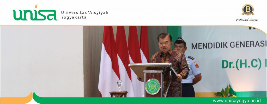 Universitas ‘Aisyiyah Yogyakarta (UNISA) mengadakan Kuliah Kebangsaan dalam rangkaian Milad ke-28, serta menjadi acara untuk menyambut mahasiswa baru tahun akademik 2019/2020, dengan menghadirkan Wakil Presiden Republik Indonesia Drs. H. Muhammad Jusuf Kalla sebagai pembicara, Kamis (10/10).